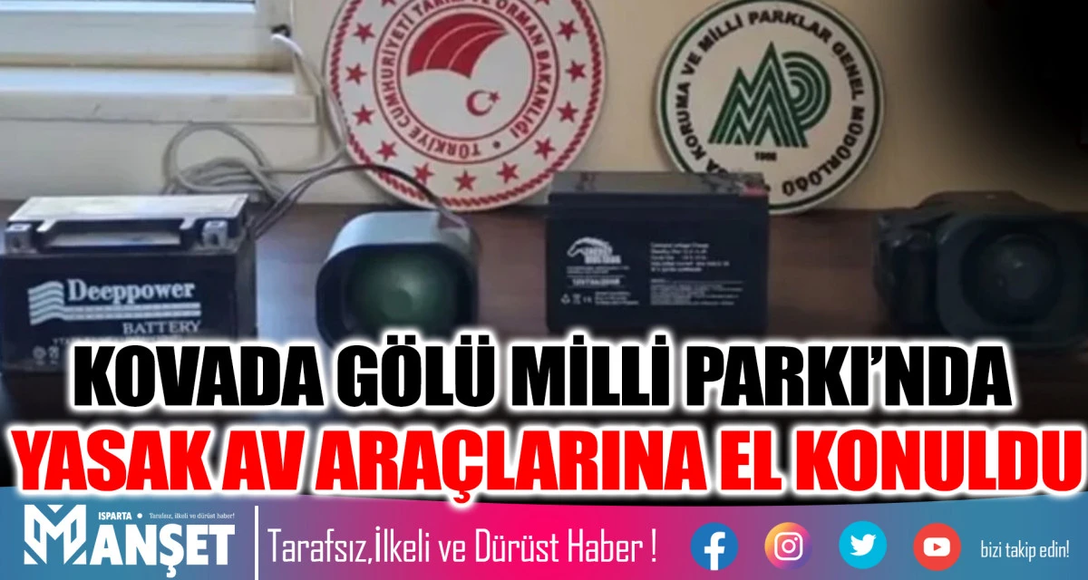 Isparta Doğa Koruma ve Milli Parklar Şube Müdürlüğü ekipleri, 23-31 Ağustos 2025 tarihleri arasında Kovada Gölü Milli Parkı Şefliği sorumluluk sahasında yaptığı denetimlerde, yasak avcılıkta kullanıldığı tespit edilen 2 adet ses yayın cihazı (teyp) ve ekipmanına imha edilmek üzere el koydu.