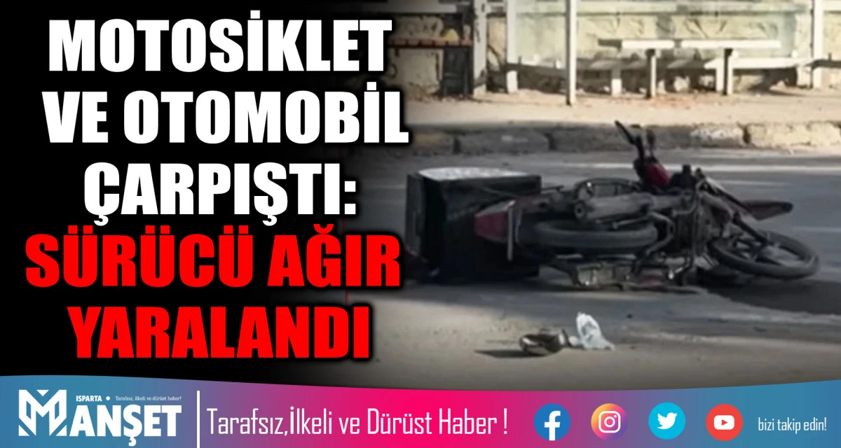 Kaza dün saat 15.30 sıralarında gerçekleşirken, motosiklet sürücüsü yaralandı ve ilk müdahalesinin ardından Yalvaç Devlet Hastanesi’ne kaldırıldı. Durumunun ağır olması nedeniyle sürücü daha sonra Isparta’ya sevk edildi.