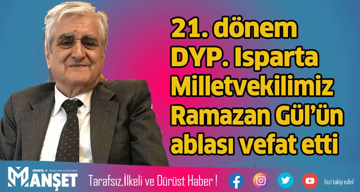 Doğru Yol Partisi 21. Dönem Isparta Milletvekili Ramazan Gül’ün ablası Sakine Özen vefat etti. Uzun zamandır rahatsız olan ve tedavi gören 87 yaşındaki Sakine Özen, memleketi Büyükkabacada sevenlerinin duası ve gözyaşları arasında son yolculuğuna uğurlandı. 21. Dönem Isparta Milletvekili Ramazan Gül, ablasının vefatından duyduğu üzüntüyü ifade ederek şunları söyledi. '5 kardeşten en büyüğümüz olan ablamın bizim üzerimizde çok büyük emeği vardır. Allah kendisinden razı olsun. Vefatından duyduğum üzüntüyü kelimeler ile ifade edemem. Mekanı cennet olsun, ailemize, akrabalarımıza ve bizi seven tüm dostlarımıza başsağlığı diliyorum. Cenazemize katılan, telefonla ve mesajla taziyelerini ileten tüm sevenlerimize de teşekkür ediyorum’ dedi.