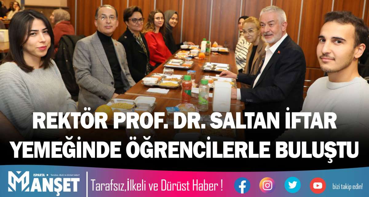 Süleyman Demirel Üniversitesi Rektörü Prof. Dr. Mehmet Saltan, Doğu Yerleşkesi öğrenci yemekhanesinde öğrencilerle iftar yemeğinde bir araya geldi. Programa, Isparta Belediye Başkanı Şükrü Başdeğirmen, belediye başkan yardımcıları da konuk oldu. Üniversitemiz yönetiminin de eşlik ettiği programda öğrencilerle sohbet eden Rektör Prof. Dr. Saltan, öğrencilerin ihtiyaç ve taleplerini dinledi. SDÜ BASIN / BÜLTEN