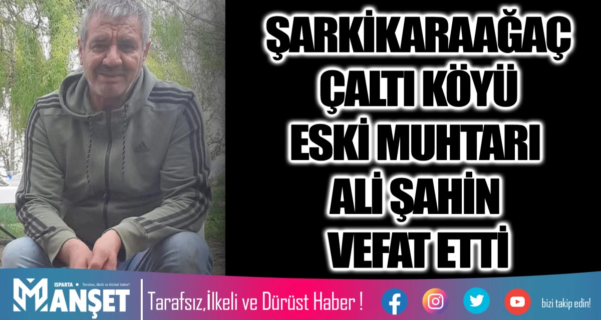 Isparta'nın Şarkikaraağaç ilçesine bağlı Çaltı Köyü'nün eski muhtarı Ali Şahin, hayatını kaybetti. Vefat haberi, köy halkı ve sevenleri arasında büyük üzüntüye neden oldu.