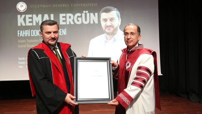 Süleyman Demirel Üniversitesi tarafından, İslam Toplumu Milli Görüş Genel Başkanı Kemal Ergün’e, toplumsal ve kültürel alanlarda gerçekleştirdiği çalışmalar, gençlerin eğitimi, kültürel kimliğin korunması ve toplumsal sorumluluk bilincinin güçlendirilmesine yönelik yaptığı çalışmalar dolayısıyla “Fahri Doktora” payesi verildi.