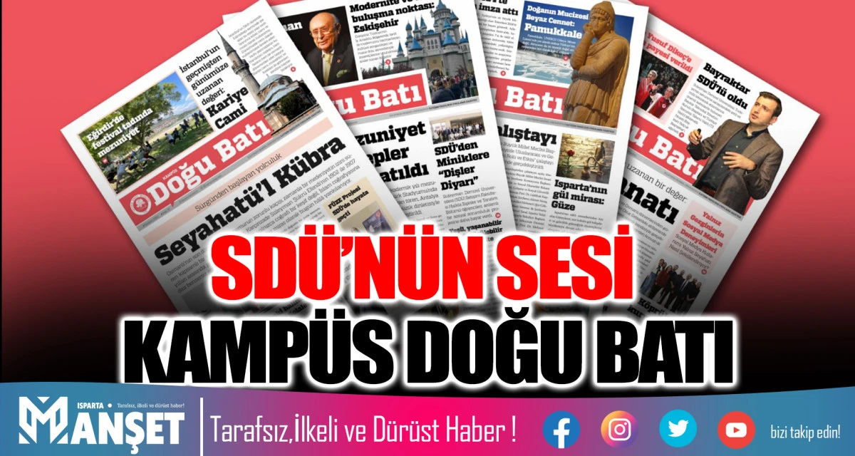 Süleyman Demirel Üniversitesi İletişim Fakültesi uygulama gazetesi olan “Kampüs Doğu Batı”, öğrencilerin kendini habercilik alanında geliştirmesi noktasında fırsatlar sunuyor. En temel bilgilerden en ince ayrıntılara kadar haberciliğe dair uygulamaların en iyi örneklerini sunan gazete Isparta özelinde haberlere yer vererek şehrin kimliğinin aktarılmasının yanı sıra tarihi ve kültürel değerlerinin yaşatılması noktasında da önemli bir görevi yerine getiriyor.