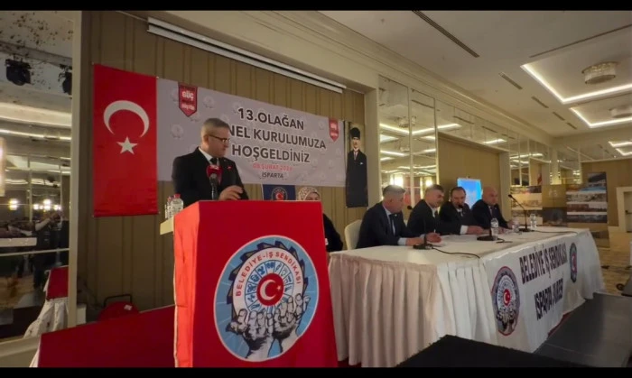 Belediye-İş Sendikası Isparta Şubesi’nin 13. Olağan Genel Kurulu, Barida Otel’de gerçekleştirildi. Kısa süre önce Belediye-İş Sendikası Isparta Şubesi Başkanı Cemal Kurt’un vefat etmesinin ardından, başkanlık görevi kongre sürecine kadar vekaleten yürütülmüştü. Genel kurulda, gündem maddeleri doğrultusunda divan heyeti oluşturuldu. Yönetim Kurulu ve Denetim Kurulu raporlarının okunarak oy birliğiyle kabul edilmesinin ardından, teşekkür konuşmasını Başkan Vekili Soner Sav yaptı. Sav, merhum Başkan Cemal Kurt’u rahmet ve minnetle anarak, sendikanın birlik ve beraberlik içerisinde yoluna devam edeceğini vurguladı. Genel kurulda tek liste ile gidilen seçimde, başkanlık görevini vekaleten yürüten Soner Sav, delegelerin oylarıyla Belediye-İş Sendikası Isparta Şubesi Başkanlığına seçildi. Soner Sav başkanlığındaki yönetim kurulunun asil listesinde ise Erdem Pehlivan, Selçuk Helhel, Mustafa Sağlam ve Yasin Atabey yer aldı. Manşet ailesi olarak Soner Sav baskanliginda yeni yönetimi tebrik ediyoruz.