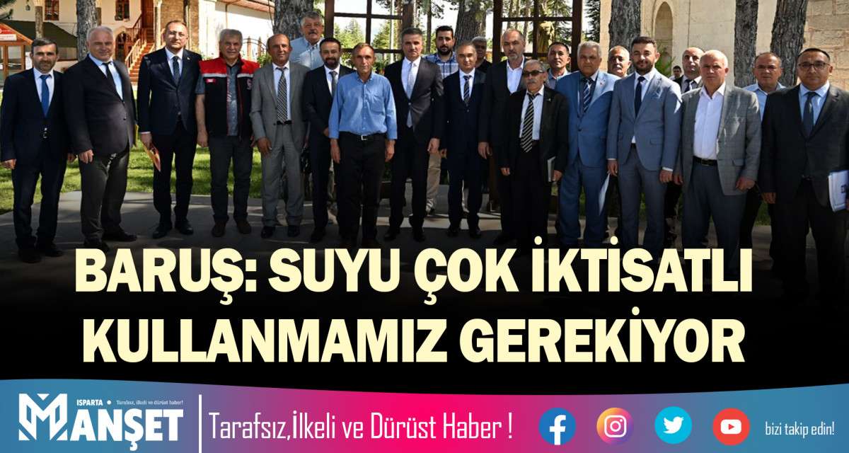 Son olarak su tasarrufu konusunda uyarılarda bulunan Vali Baruş “Hava sıcaklıklarının yükselmesi, su kaynaklarındaki suyun azalması neticesinde evlerimizde kullandığımız suyu çok çok iktisatlı kullanmamız gerekiyor. Çünkü kullanabileceğimiz kaynak sayısı da çok sınırlı. Mutlaka su saatsiz su kullanımına müsaade etmememiz gerekiyor. Su saati olacak her hanede, başkaları insani tüketimi amaçlı suya ulaşamazken adam tarla suluyor, bahçe suluyor. Bu hırsızlıktır, başkasının hakkına girmektir. Yani artık bizim bahçelerdeki meyve ağaçlarını sulayacak, sebzeyi sulayacak kadar su kullanma lüksümüz yok. Bundan haberimiz olsun. Bol bol kullanım istediğimiz gibi kullanım devri bitiyor” ifadelerinde bulundu.