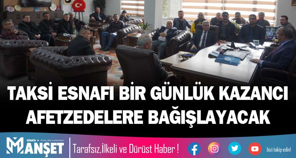 Isparta Esnaf ve Sanatkarlar Odaları Birliği öncülüğünde, ilimizde taşıma hizmeti veren taksi esnafı bir günlük kazançlarını afetzedelere bağışlayacak