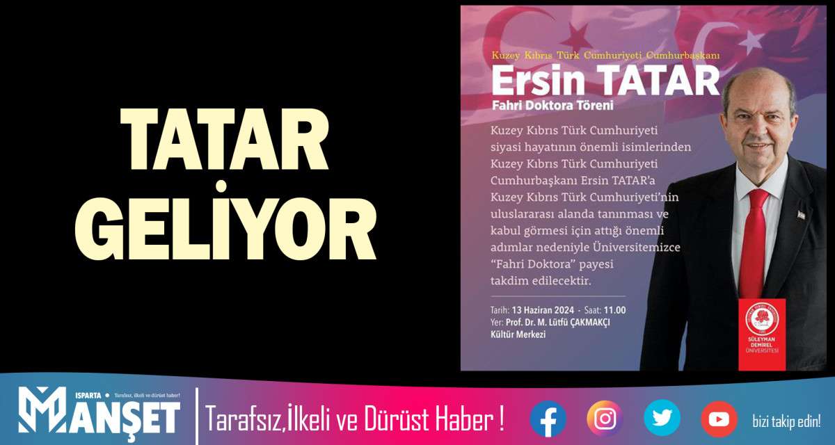 Süleyman Demirel Üniversitesi tarafından Kuzey Kıbrıs Türk Cumhuriyeti’nin gelişimine büyük katkıda bulunan, uzun yıllara dayanan siyasi tecrübesi ve bilgi birikimi ile siyaset bilimi ve kamu yönetimi alanlarında ciddi yetkinlik ve uzmanlığı olan Kuzey Kıbrıs Türk Cumhuriyeti Cumhurbaşkanı Ersin Tatar’a “Fahri Doktora Payesi” verilecek. Fahri Doktora Töreni, 13 Haziran Perşembe günü saat 11.00’de Prof. Dr. M. Lütfü Çakmakçı Kültür Merkezi’nde gerçekleştirilecek.