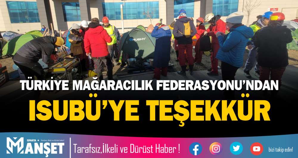 Türkiye Mağaracılık Federasyonu Başkanı Bülent Genç, Kahramanmaraş Depremi arama kurtarma çalışmalarına ilk günden itibaren katılan ISUBÜ Mağara Araştırma Topluluğu’na ve gerekli izinleri ivedilikle verdiği için Isparta Uygulamalı Bilimler Üniversitesi Rektörü Prof. Dr. Yılmaz Çatal’a teşekkür etti.