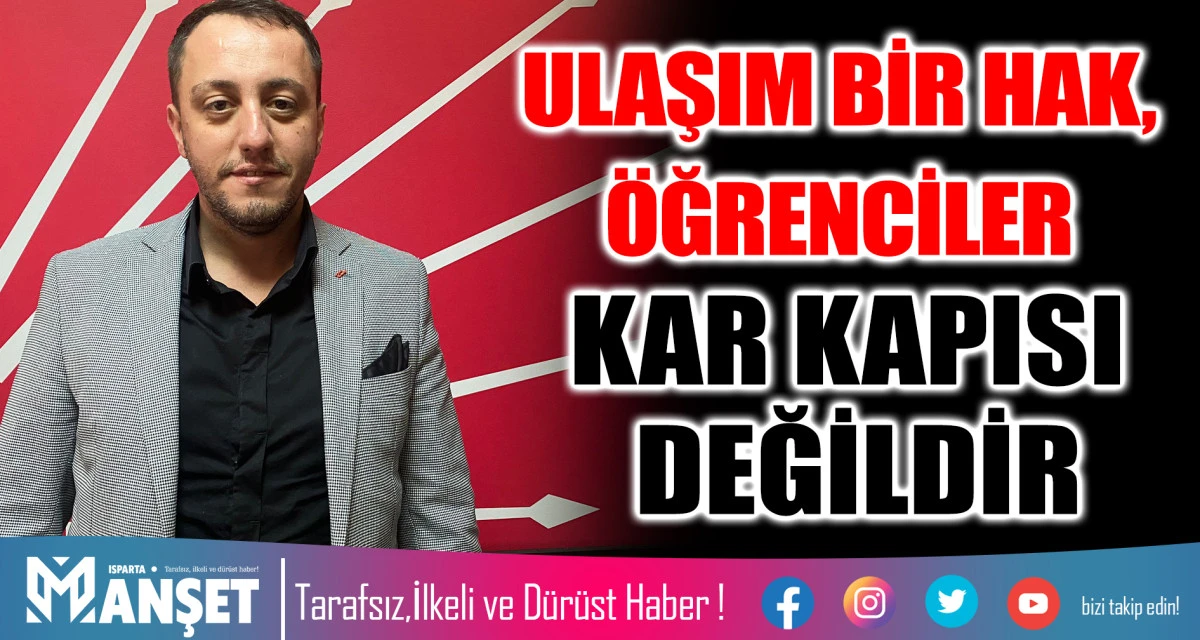 CHP Isparta Merkez İlçe Başkanı Birtan Özgün Takmaz, şehir içi ulaşıma yapılan zamların öğrencileri ağır bir yük altında bıraktığını belirterek, “Ulaşım bir kamu hizmetidir, kâr kapısı değildir. Öğrencilerimizi borçlandıran, eğitim hakkını gasp eden bu düzen kabul edilemez” dedi.