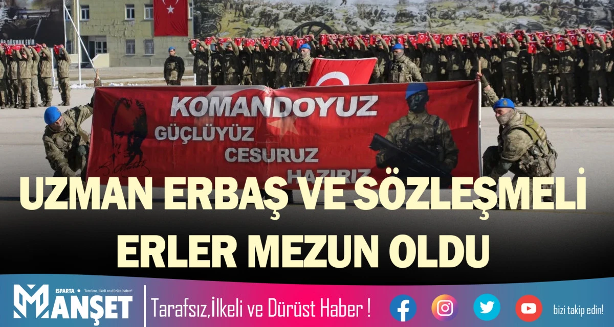 ISPARTA'da 40'ıncı Komando Eğitim Tugay Komutanlığı'nda eğitimlerini tamamlayan uzman erbaş ve sözleşmeli erler, törenle mezun oldu. Törene katılan aileler, büyük sevinç ve gurur yaşadı.