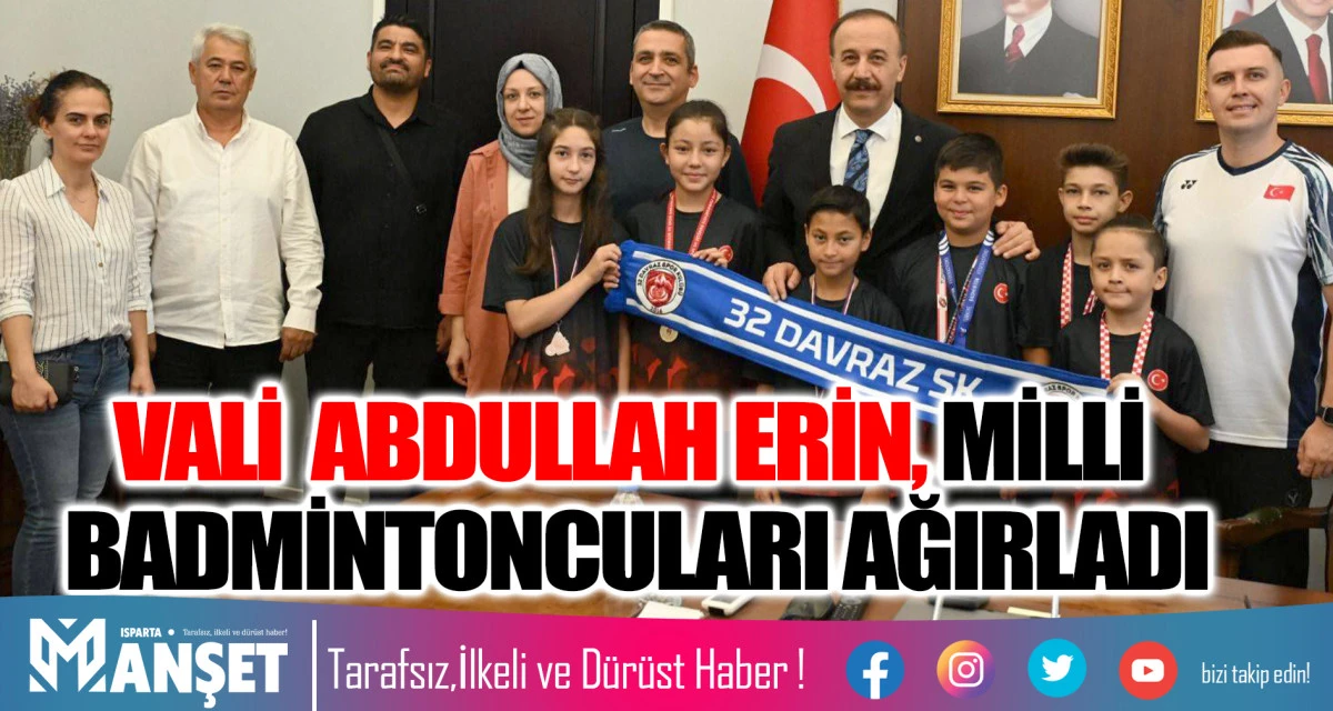 Isparta Valisi Abdullah Erin, 32 Davraz Spor Kulübü bünyesinde badminton branşında milli başarılar elde eden sporcuları, antrenörleri ve kulüp yöneticileriyle birlikte Valilik’te ağırladı.