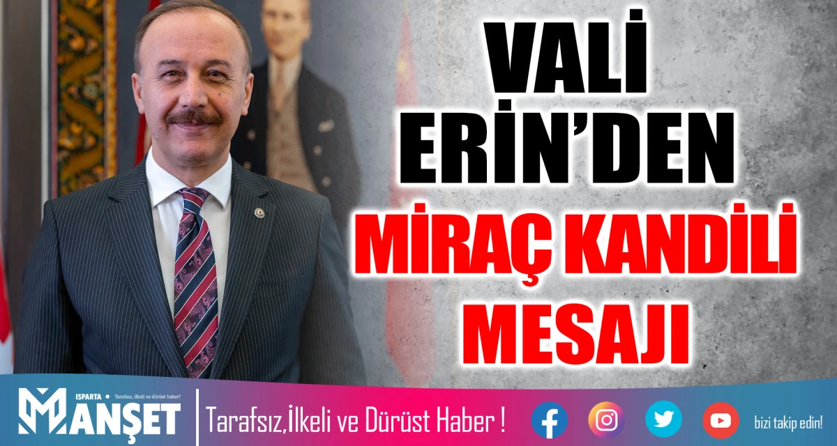 Vali Abdullah Erin, mesajının sonunda başta Ispartalılar olmak üzere aziz milletin ve tüm İslam âleminin Miraç Kandili’ni tebrik etti.