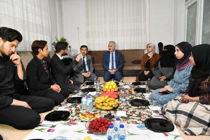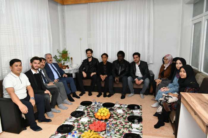 ISUBÜ Uluslararası Öğrenci Topluluğu üyesi öğrencilerin evinde gerçekleşen buluşmada öğrencilerle bir süre sohbet eden Vali Ömer Seymenoğlu ve Rektör Prof. Dr. İbrahim Diler, ezanın okunmasıyla öğrencilerle birlikte oruçlarını açtılar.