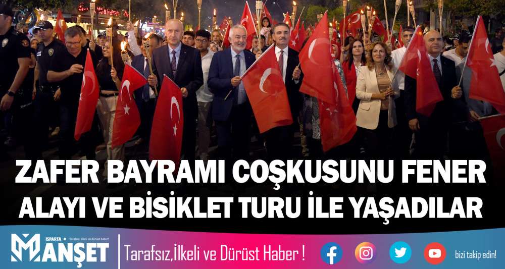 30 Ağustos Zafer Bayramının 101.yıldönümü Isparta’da coşkuyla kutlandı. Gündüz yapılan kutlamaların ardından akşam da Isparta Belediyesi önünden başlayan ve 15 Temmuz Cumhuriyet ve Demokrasi Meydanına kadar süren Fener Alayı ardından da şehir bisiklet turu düzenlendi.