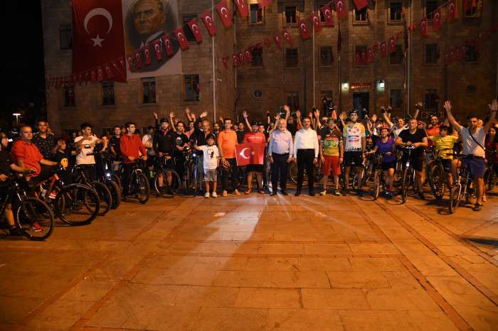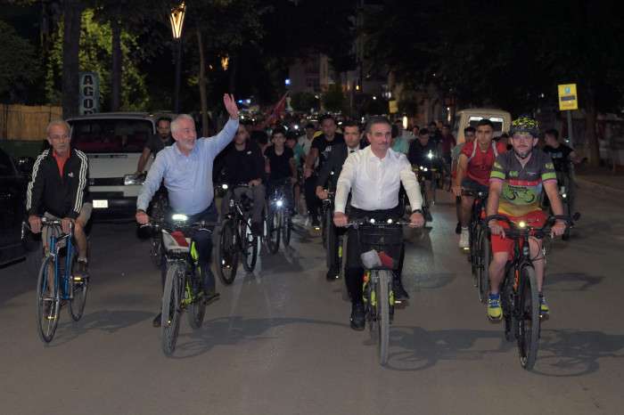 15 Temmuz Cumhuriyet ve Demokrasi Meydanında saygı duruşu ve İstiklal Marşı okunurken, Isparta Valisi Aydın Baruş ve Belediye Başkanı Şükrü Başdeğirmen yüzlerce bisiklet severle birlikte şehir bisiklet turu için pedal çevirdi.